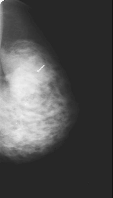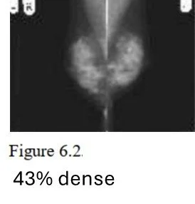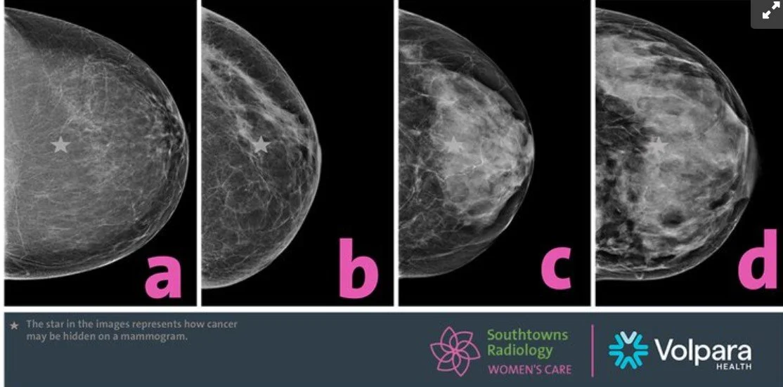 In the picture you’ll see four images of different density breasts - can you see the white star? That is the “masking risk” of breast density, it’s also an independent risk factor for development of breast cancer.